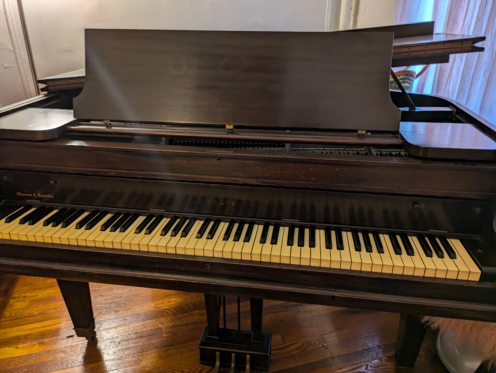 I’m looking for a new home for the piano I grew up with and learned to play on. It’s a high-quality vintage instrument from the “Golden Age” of American piano manufacturing with a wonderful tone and a lot of potential for the right person.