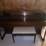 Acrosonic Spinet piano 35H x 58L x 26W. Needs some TLC – would need to be tuned, finish has some watermarks keyboard cover missing knobs and several keys are chipped. Piano has been enjoyed over the years. Pick up at own cost. We can move piano out without the use of stairs.