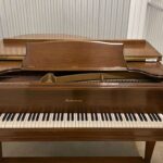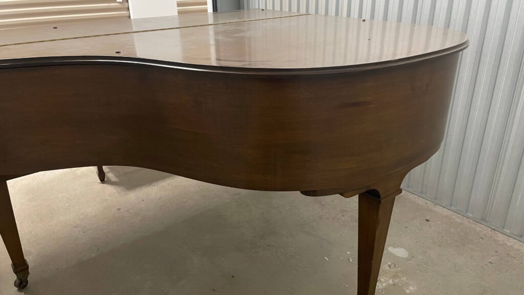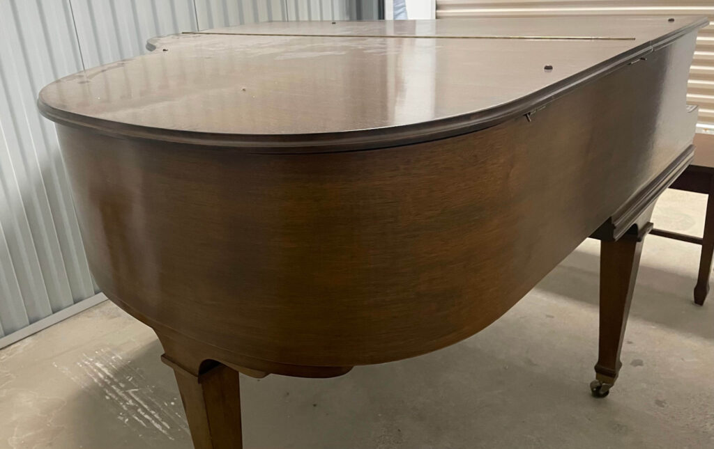 Walnut finish in excellent condition. Piano is almost up to proper pitch and can hold tune properly. Needs regular tuning and action lubrication (~$225). If going to non-profit would be willing to cover cost of moving. Piano is currently in a ground floor temperature controlled storage unit. Appraised by Illo’s Piano Restorations.