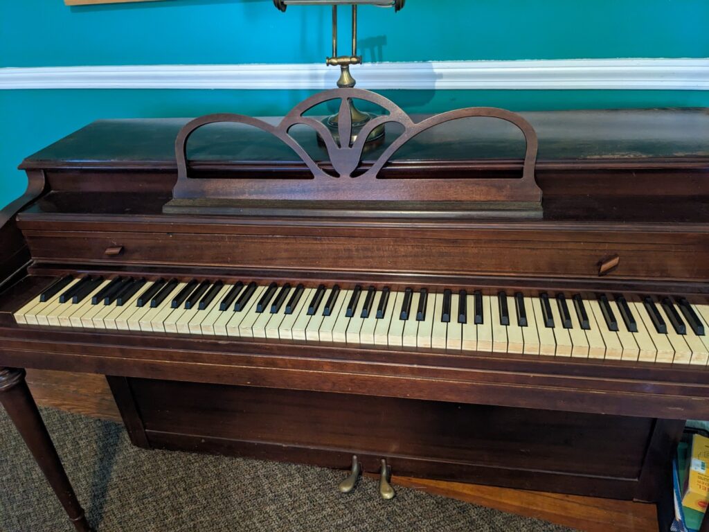 Spinet, 80 years old, holds tuning but needs to be tuned