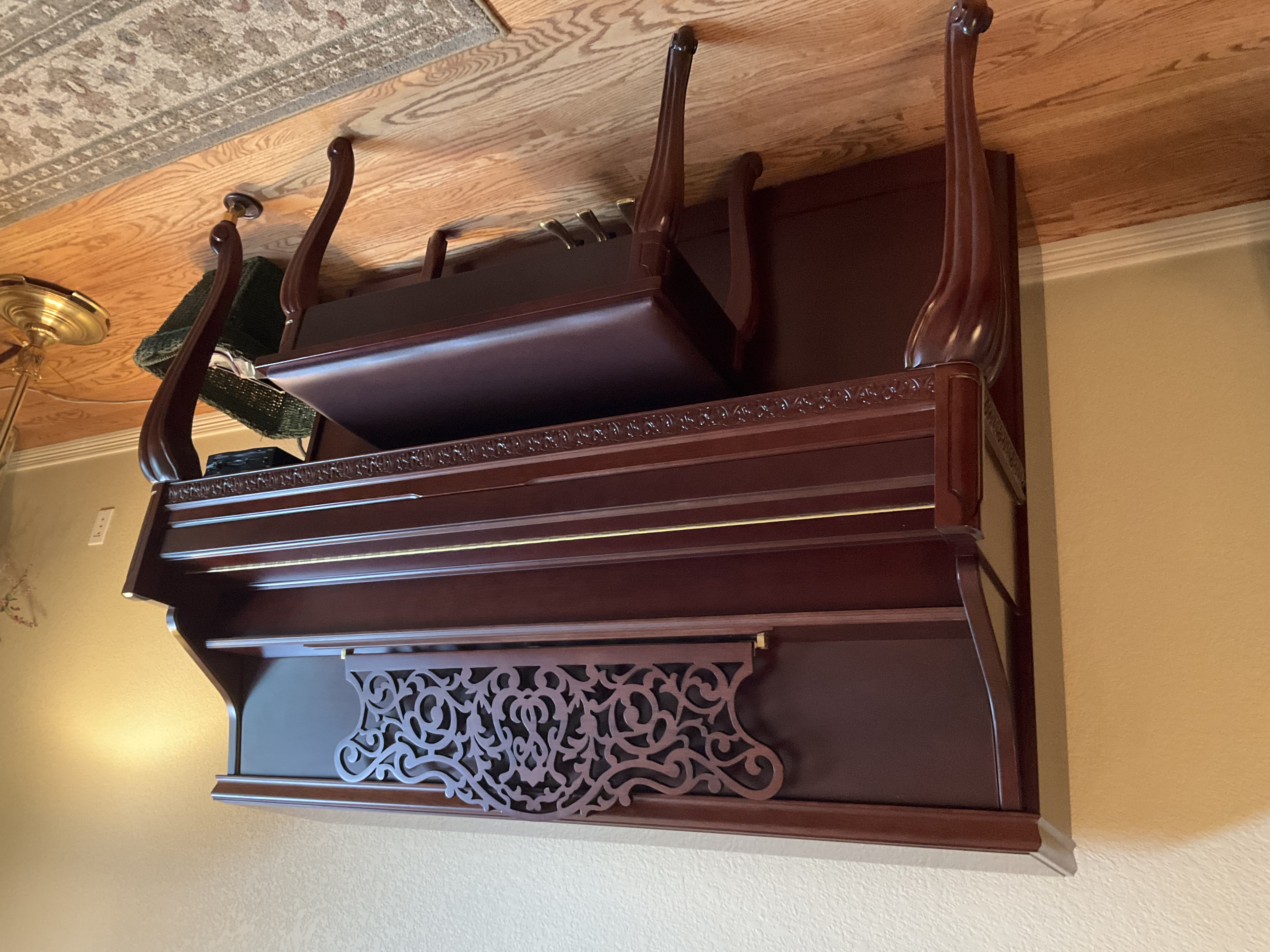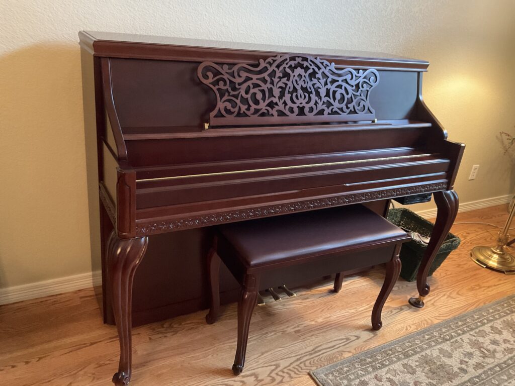 This piano has a rich, full sound and elegant carved wood detailing that makes it a beautiful piece for any home or setting. The self-playing feature is perfect for entertaining guests or enjoying live piano music without needing to play yourself.