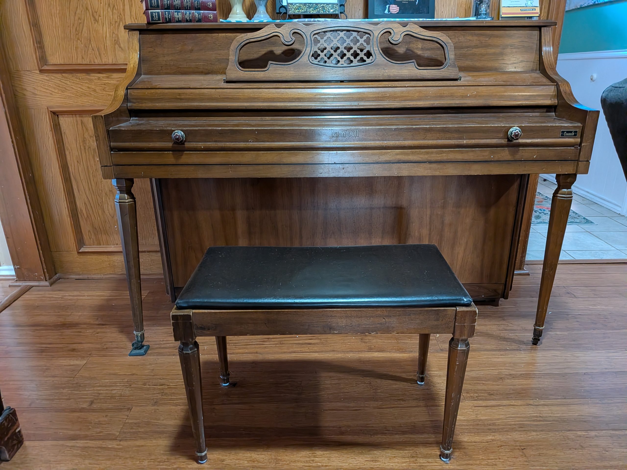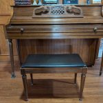 Gently used Kimball Studio Console Upright. Fully functional. Has a blemish on the finish on top of the piano and one slightly wobbly leg. Plays just fine. Needs a pitch raise and a tune. I’m willing to pay $50 towards the cost of the tuning service, I will not pay for the piano to be moved.