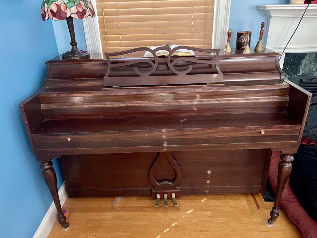 Lester, Model: Betsy Ross Spinet. Very good condition. No cracks or peeling of the finish. Keys are in excellent condition. 3 stairs down to get it out of the house. All around, it’s a very nice piano with very good sound. Will split cost to move.