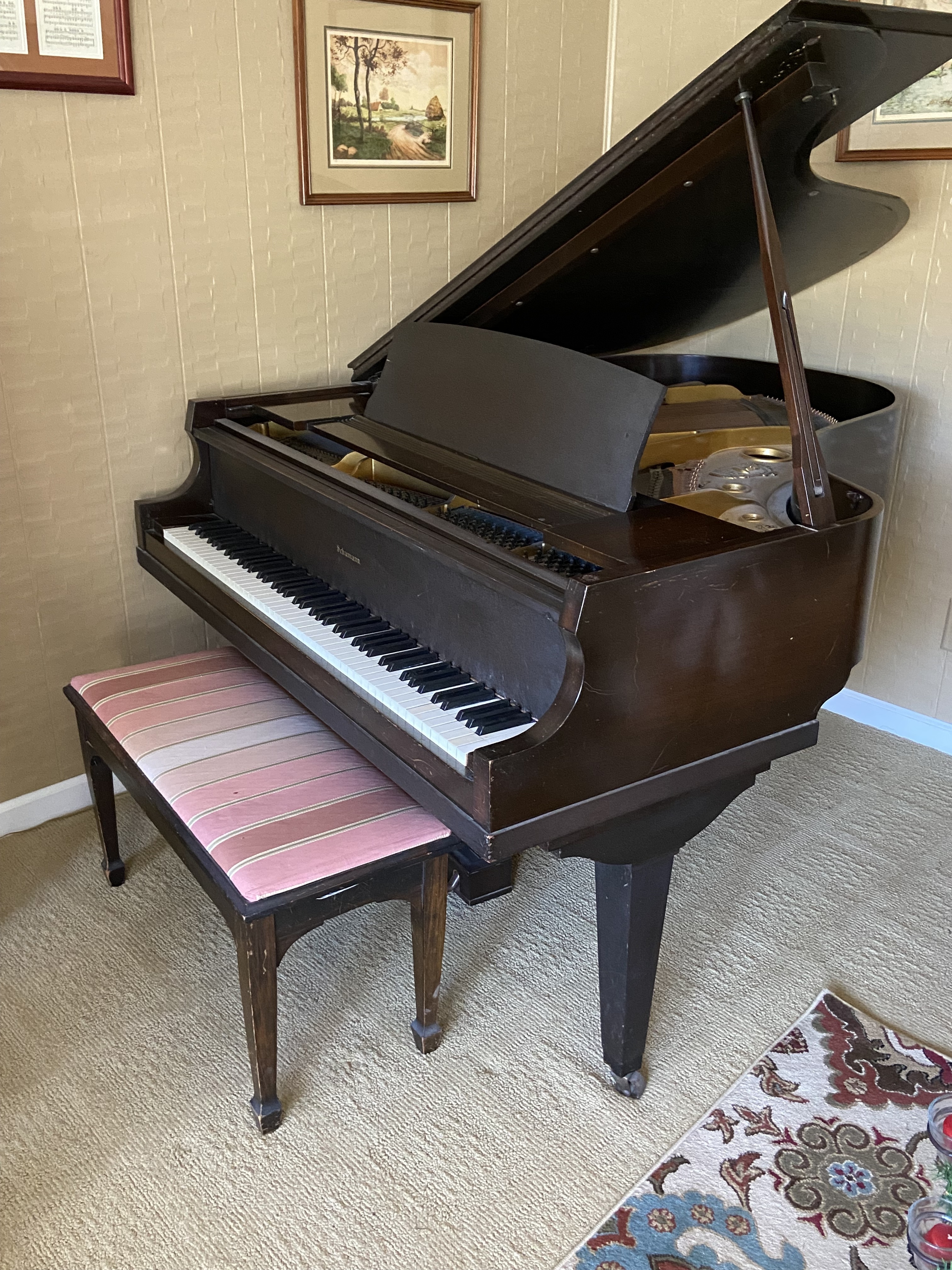 Exterior in good condition. Piano tuner recently inspected and reports piano plays well. Willing to donate to group or family. Moving costs can be negotiated. Moving at our end goes down 2 stairs, and 40 feet to loading area.