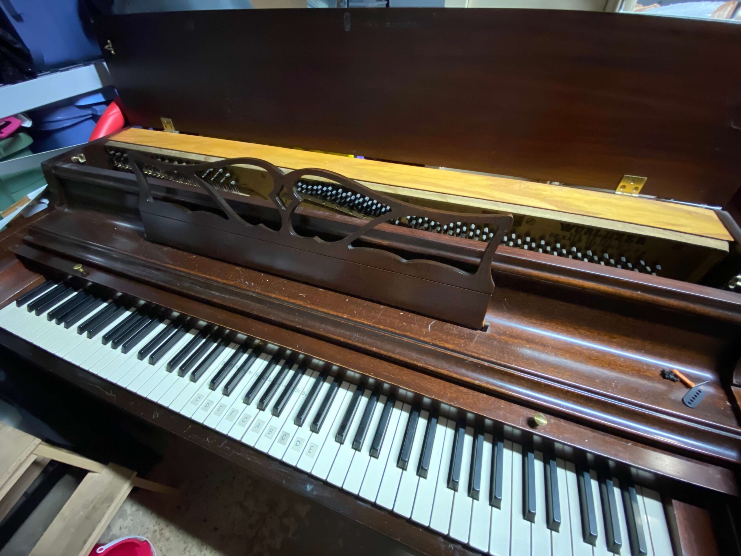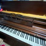 We are looking to give away our upright piano. A couple of the keys are sticky, but otherwise mechanically, it just needs a tune. I’m not sure about its age, as it was in our house when I was young. The surface of the piano is rough. Finish is a red brown wood. The piano brand is Wurlitzer, manufactured in DeKalb, IL. Excellent piano for learning how to play.