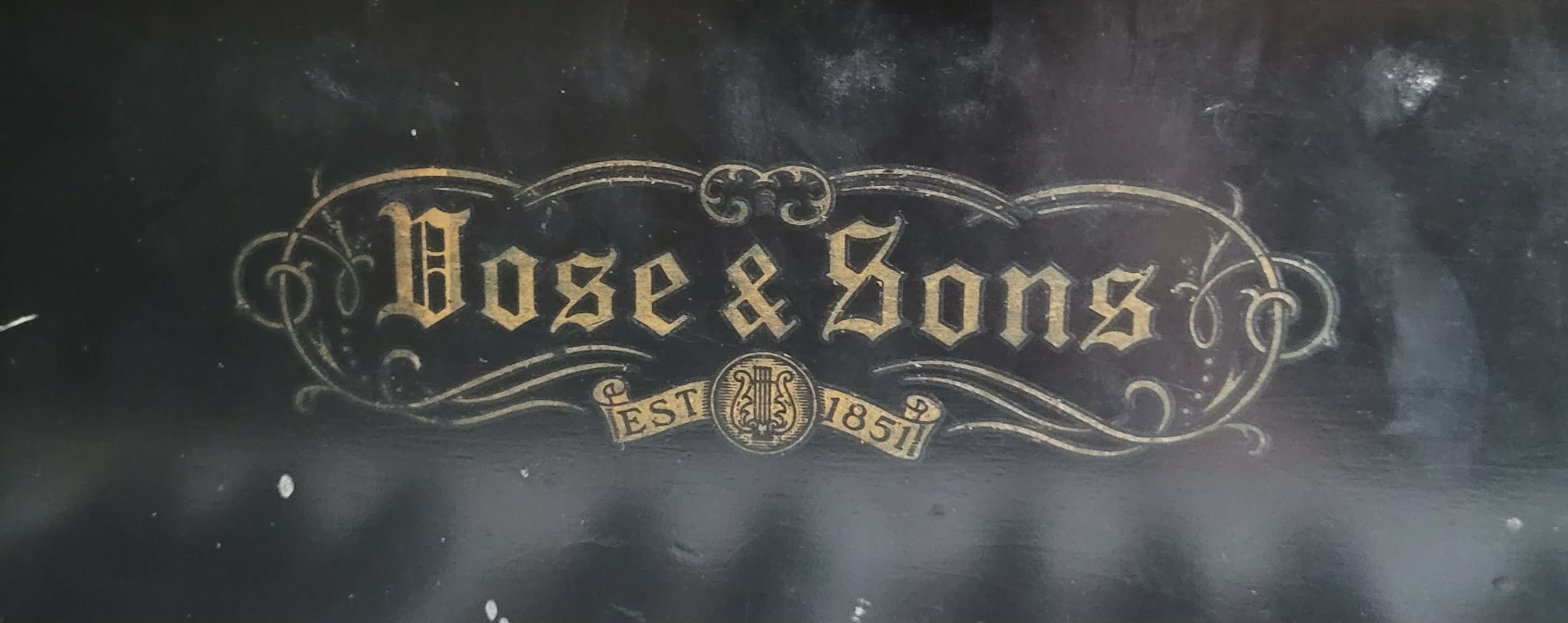 Vose & Sons baby grand piano of unknown age (purchased refurbished 40+ years ago). Black, with many minor cosmetic blemishes. Dusty, but thought to be in pretty good condition.